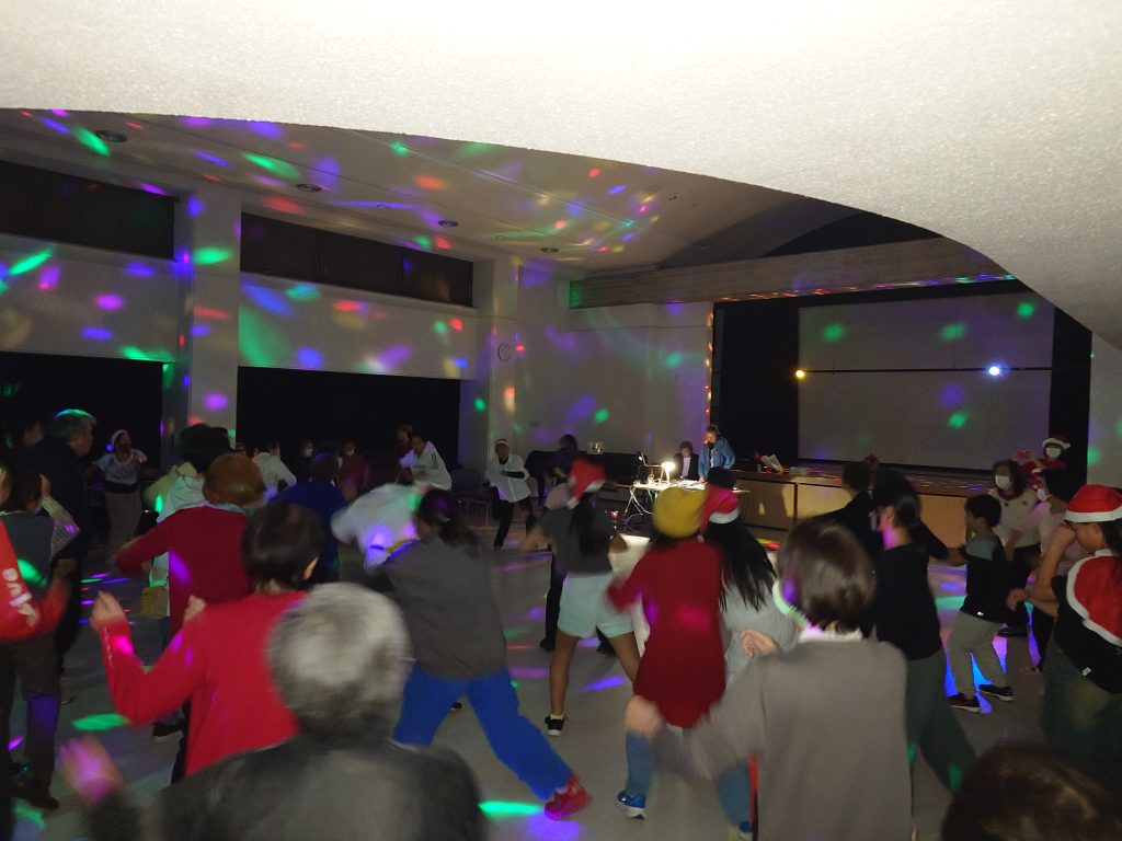 本当にたくさんの人で、大人も子ども皆さん元気よくリズムに合わせて踊られていました。クリスマスも近いので、サンタさんの衣装の方も多かったですね!!