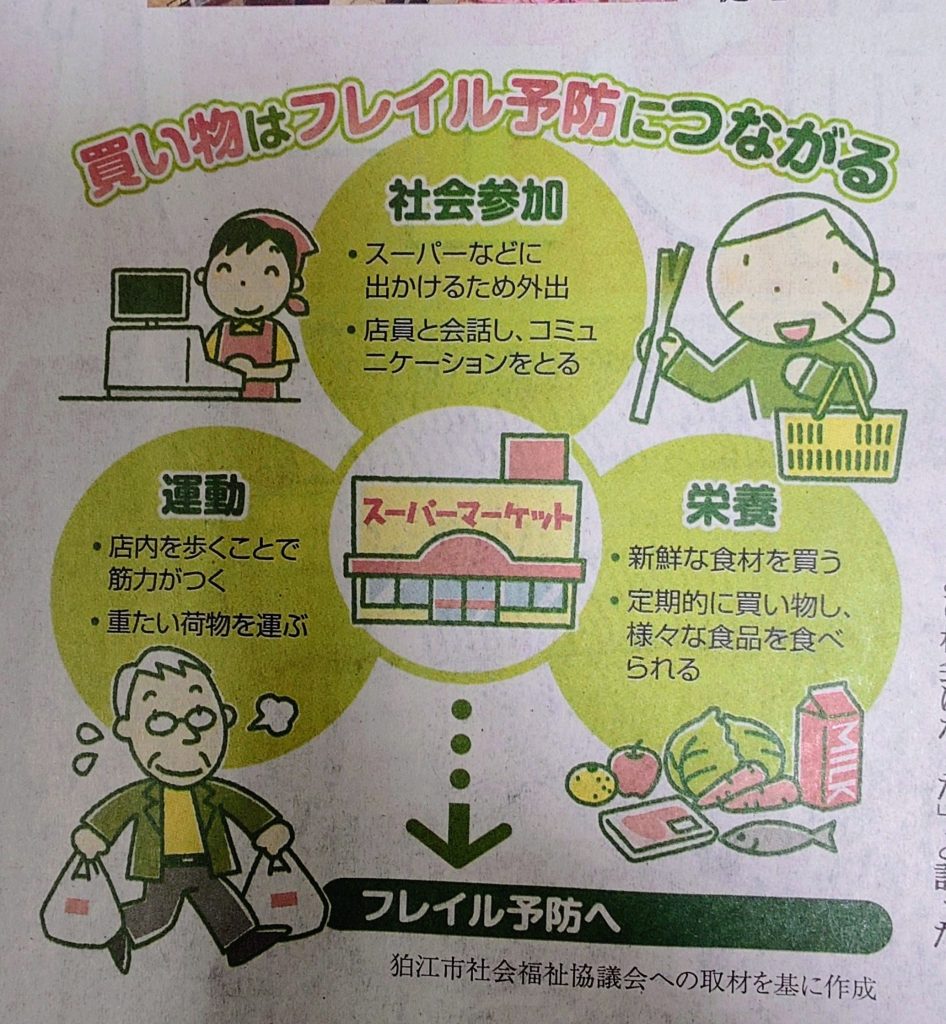 加齢に伴い心身が衰える「フレイル」といわれる状態を予防するには、買い物がおすすめですと。